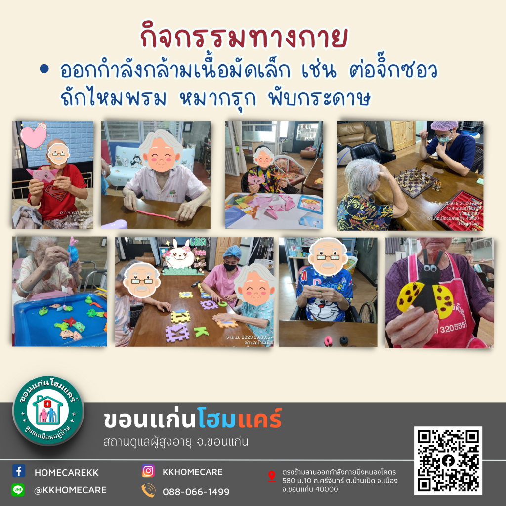 -ผู้ดูแลควรสนับสนุนให้ผู้สูงวัยทำกิจกรรมงานอดิเรกหลังประกอบกิจวัตรประจำวัน เช่น