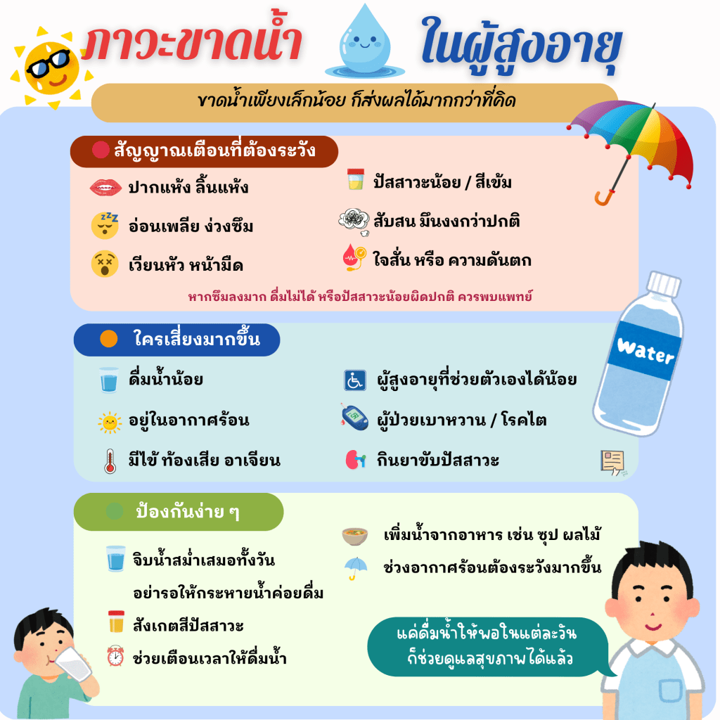 #ขาดน้ำ #ผู้สูงอายุ #สุขภาพผู้สูงอายุ #ดูแลผู้สูงอายุ #ดื่มน้ำกันเถอะ #อากาศร้อน #ฮีทสโตรก #ดูแลสุขภาพ #สุขภาพดีเริ่มที่ตัวเรา #ความรู้สุขภาพ #PharmacyTips #HealthTips #DrinkMoreWater